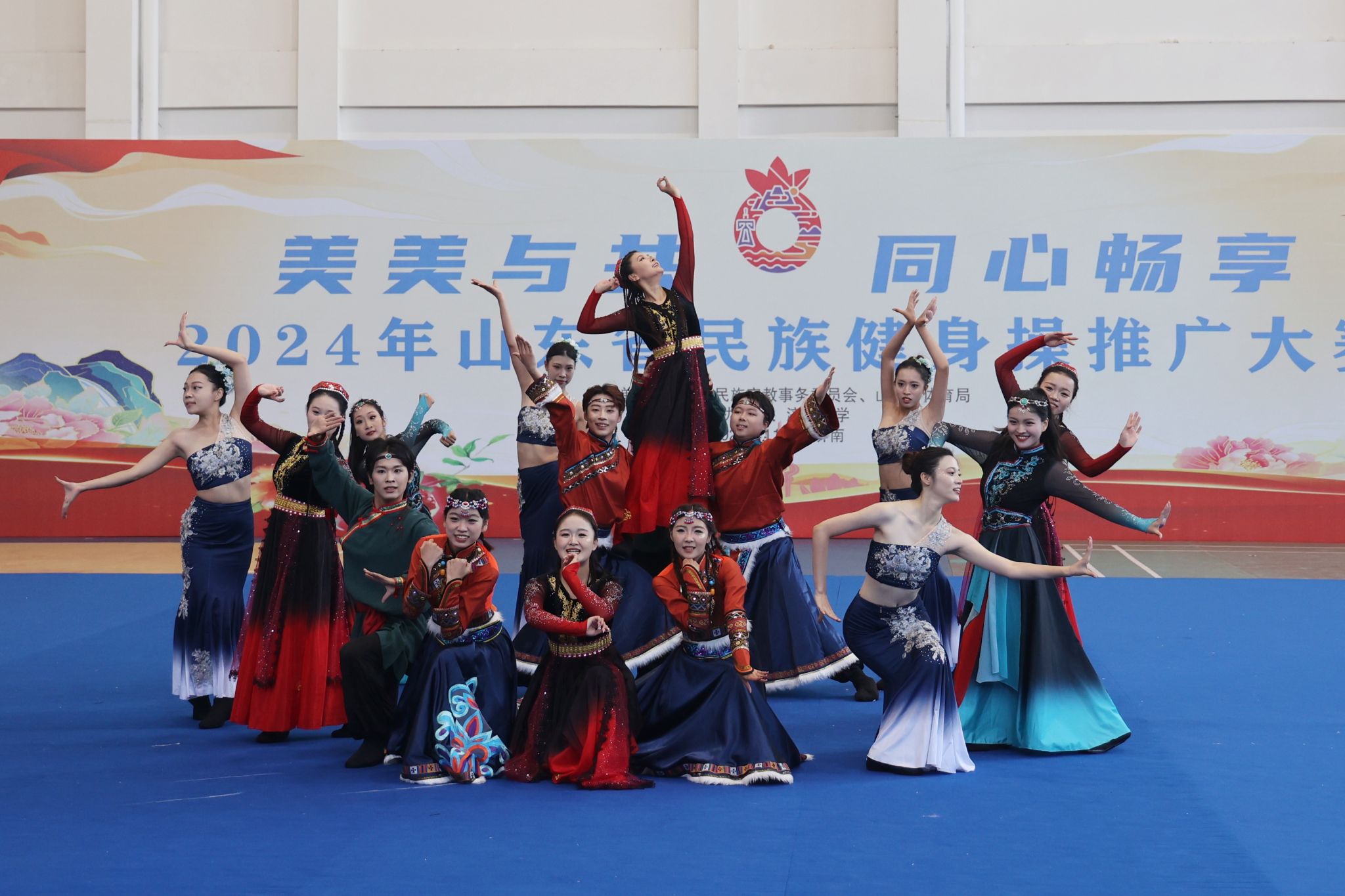 本次大赛共有来自全省8个代表队的200余名运动员参加,设规定项目和自选项目两个比赛项目,采取两轮比赛制,由专业评委根据参赛队伍的动作整齐度、创意表现及整体风貌进行打分。各参赛队伍在规定项目的展示中,动作整齐划一,充分展现了扎实的健身操基本功;在自选项目的比拼中,选手们将民族文化的独特魅力与现代健身的活力完美融合,每一个动作、每一段旋律,都承载着民族的历史、情感和智慧;在单人项目的竞争中,选手们更是各展风采,用精湛的技艺和饱满的热情诠释了民族健身操的魅力。经过激烈的角逐,临沂市代表队获得一等奖,烟台市、济南市、聊城市代表队获得二等奖,肥城市、枣庄市、济南护理职业学院、济南党家中学代表队获得三等奖。
