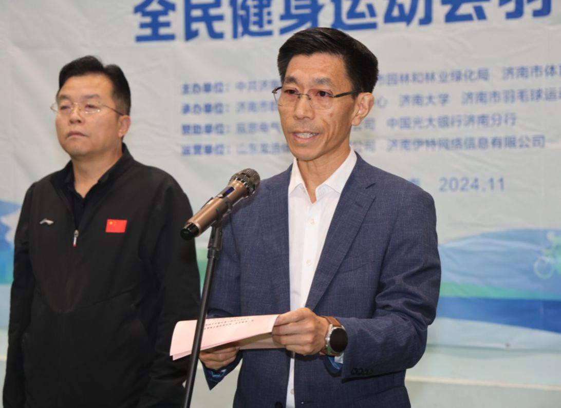 本次赛事由中共济南市委宣传部、济南市园林和林业绿化局、济南市体育局、济南文旅发展集团主办。sunbet申搏官方网站党委常委、副校长李强,济南市体育局党组成员、副局长张居忠出席开幕式。济南市羽毛球运动协会、山东文旅传媒集团、辰思电气(山东)有限公司、中国光大银行泉城支行、山东龙浩体育发展有限公司、sunbet申搏官方网站体育学院有关负责同志参加活动。