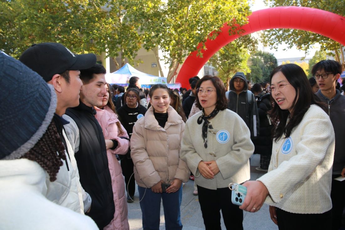 开幕式上,中外学生精彩的歌舞表演和激昂的诗歌朗诵,展示了中外文化语言之美,体现了中外文化交融互鉴。活动现场还设置了中、非、英、法、德、日、韩七个主题展区,通过引人入胜的多国风情展示、异彩纷呈的互动游戏体验、琳琅满目的国际美食品尝以及集章打卡领取实用的文创产品等形式让同学们沉浸式解锁、“零距离”触摸。
