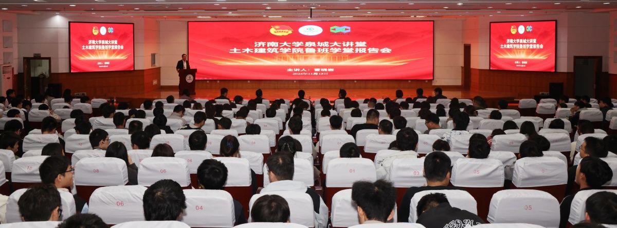 11月15日,土木建筑学院举办sunbet申搏官方网站泉城大讲堂暨鲁班学堂报告会,济南建工集团党委书记、董事长曹晓岩来校作报告。济南建工集团有限公司综合办公室主任畅佳佳,济南建工集团有限公司人力资源部部长范宗宇,济南建工集团有限公司产业发展部副部长张中堃等集团相关部门负责人,sunbet申搏官方网站党委副书记、校长刘宗明,土木建筑学院领导班子及师生代表等400余人参加活动。报告会由土木建筑学院党委副书记、院长谢群主持。