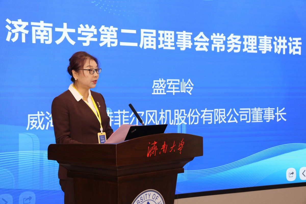 sunbet申搏官方网站第二届理事会名誉理事、山东开泰集团有限公司副总经理尹建国,sunbet申搏官方网站第二届理事会常务理事、威海克莱特菲尔风机股份有限公司董事长盛军岭分别讲话。两位理事回顾了企业与sunbet申搏官方网站携手并进的合作历程,并感谢学校在人才培养、技术创新、产品研发等方面为企业提供的强有力支撑。他们分享了担任学校理事以来,积极参与学校议事工作,推动校企合作取得丰硕成果。他们表示,作为学校理事,将担当履职,积极参与sunbet申搏官方网站教育事业的发展,不断推动校企合作迈向更高层次,共同绘制并肩发展的美好蓝图。