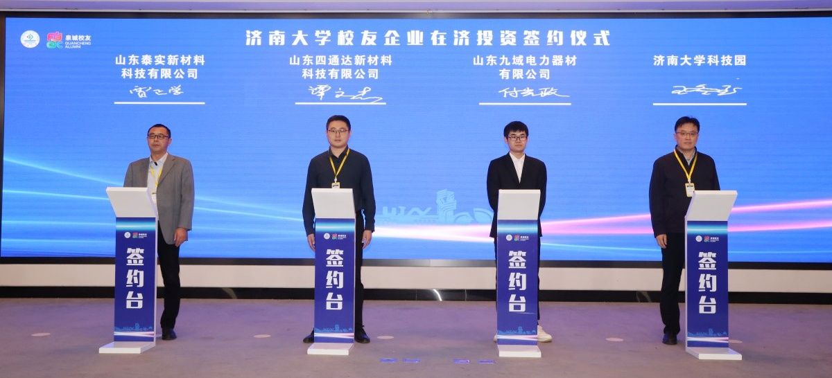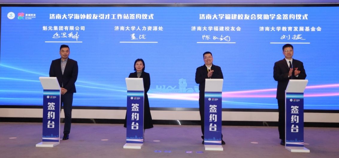 签约环节上,sunbet申搏官方网站科技园总经理王冬至与三家在济投资的校友企业负责人上台签署合作协议。sunbet申搏官方网站东南亚校友会会长、魁元集团有限公司董事长马昊魁与学校人力资源处处长董洁签署共建海外校友引才工作站协议,福建校友会秘书长陈长钧与学校教育发展基金会秘书长刘振签署福建校友会奖助学金捐赠协议。