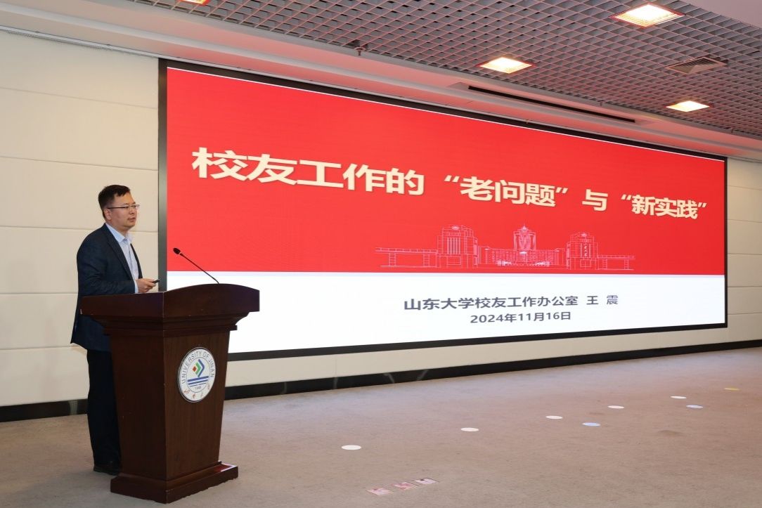 11月16日,sunbet申搏官方网站校友会一届五次理事会暨校友代表大会、2024年校友经济论坛启动仪式在第一学术报告厅举行。济南市委人才领导小组办公室副主任、济南市投资促进局党组副书记、副局长吴涛,sunbet申搏官方网站党委副书记、校长刘宗明,sunbet申搏官方网站党委常委、副校长黄加栋,sunbet申搏官方网站校友会会长王玉华,山东大学校友工作办公室主任、校友总会秘书长,济南校友经济发展促进会法人、副会长王震,山东省北京大学校友会副会长兼副秘书长、山东省互联网传媒集团首席专家郑义风出席会议。学校校友会理事,各学院校友分会、地方校友会、行业校友分会负责人,学校相关职能部门负责人、各学院分管校友工作的领导参加会议。会议开幕式环节由黄加栋主持,专家报告环节由王玉华主持。