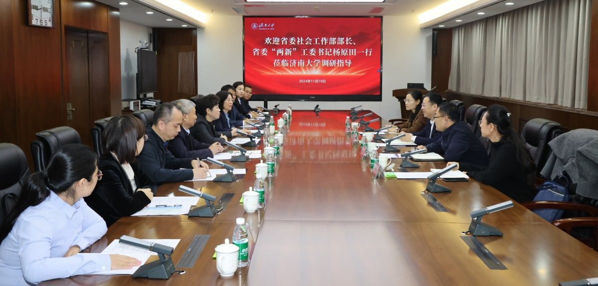 11月19日,山东省委社会工作部部长、省委“两新”工委书记杨原田一行来校调研并座谈。学校党委书记刘春华,党委常委、副校长王霞,副校长徐征和参加座谈。