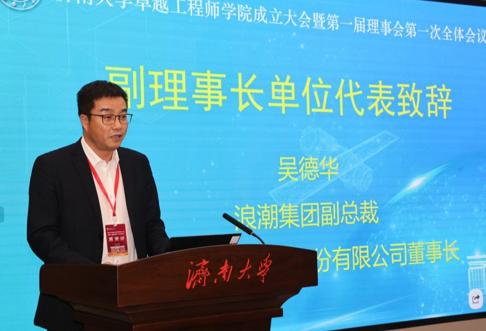卓越工程师学院副理事长、浪潮集团副总裁、山东华光光电子股份有限公司董事长吴德华代表理事单位致辞。他表示,作为副理事长单位,华光光电子股份有限公司将与其他理事单位一起,加强资源统筹、深化校企合作、构筑育人平台,充分发挥校企双主体优势,打造事业发展共同体,肩负起卓越工程人才培养的重任。