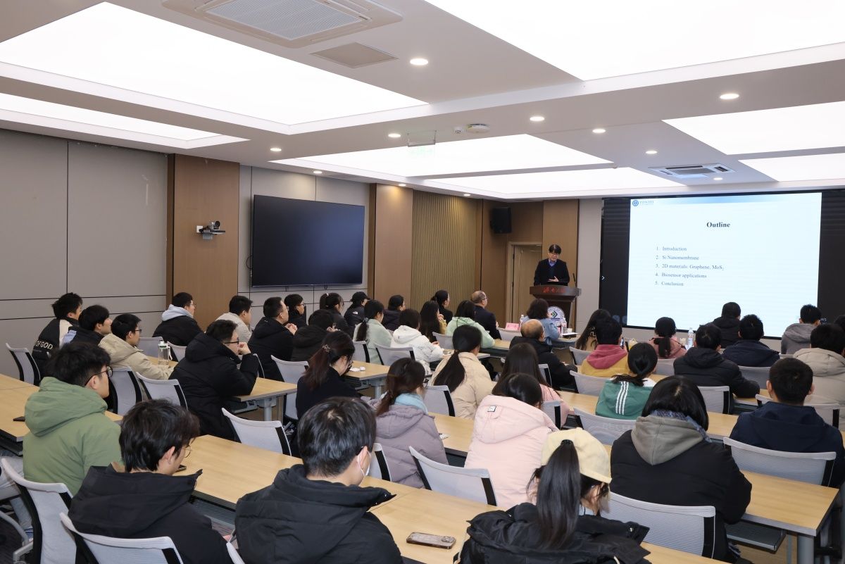 报告中,安钟贤教授对硅纳米膜和二维材料的结构特征和厚度调控、大规模连续薄材料生产技术及其在可穿戴、光学和生物医学中应用进行了深入的讨论,并展望其未来发展方向。与会师生积极参与现场互动交流,开拓了国际视野,受益匪浅。