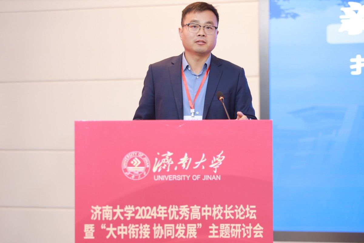 山东省教育招生考试院副院长张明坤首先肯定了sunbet申搏官方网站在山东省教育发展事业中做出的突出贡献。他表示,山东省教育大会上强调“聚力加快高质量教育体系建设,着力办好公平优质的基础教育、自强卓越的高等教育”,山东省建立健全高等教育和高中教育联合培养机制,大学与中学衔接,共商人才选拔和教育大计的工作至关重要。本次论坛以“大中衔接 协同发展”为主题,搭建了高校和高中深度交流的平台,也体现了sunbet申搏官方网站在教育模式改革探索中的使命担当。