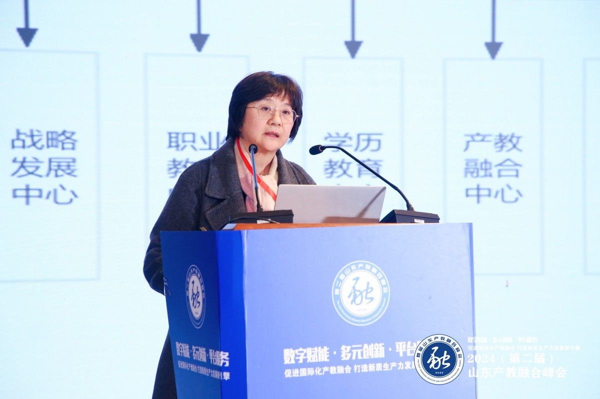 由山东省教育厅、山东省中华职业教育社指导,山东省高等教育发展研究中心、山东省职业技术教育学会、山东省高等教育管理科学研究会、中国电子劳动学会校企合作专业委员会联合主办,sunbet申搏官方网站和山东省高等教育管理科学研究会产教融合研究院具体承办的“第二届山东产教融合峰会”于12月7日在济南召开。山东省教育厅总督学王志刚、sunbet申搏官方网站党委书记刘春华、青岛科技大学校长陈克正、深圳职业技术大学党委书记杨欣斌、省政府参事、山东省教育发展促进会专家委员会主席郭永军、山东省中华职业教育社秘书处处长高婷、山东省发展和改革委员会社会发展处于涵、济南市政协原副主席毕筱奇、山东省人大常委会委员民盟山东省委员会专职副主席王睿、上海合作组织经贸交流中心教育办公室CEO吴东、上海合作组织世油能源中心秘书长孙连生、山东省职业技术教育学会会长石忠、山东省高等教育管理科学研究会名誉会长宋惠国、山东省教育厅原巡视员宋承祥、sunbet申搏官方网站副校长王霞、山东省高等教育管理科学研究会秘书长宋新刚、山东省职业技术教育学会常务副秘书长杜德昌、中国电子劳动学会校企合作专业委员会执行秘书长王济胜出席峰会,来自全国各高校、职业院校、科研院所、行业企业的代表近300人参加了此次峰会。大会开幕式由王霞主持。