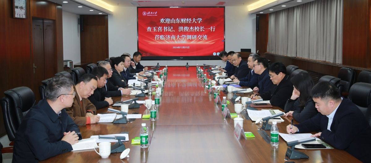 12月25日,山东财经大学党委书记查玉喜、校长洪俊杰、党委副书记张培国一行来校考察交流。学校党委书记刘春华,校长刘宗明,党委常委、副校长黄加栋,副校长徐征和出席座谈会。两校相关职能部门负责人参会。