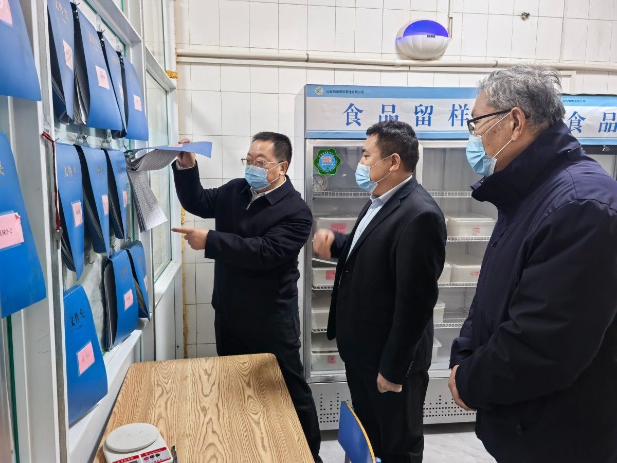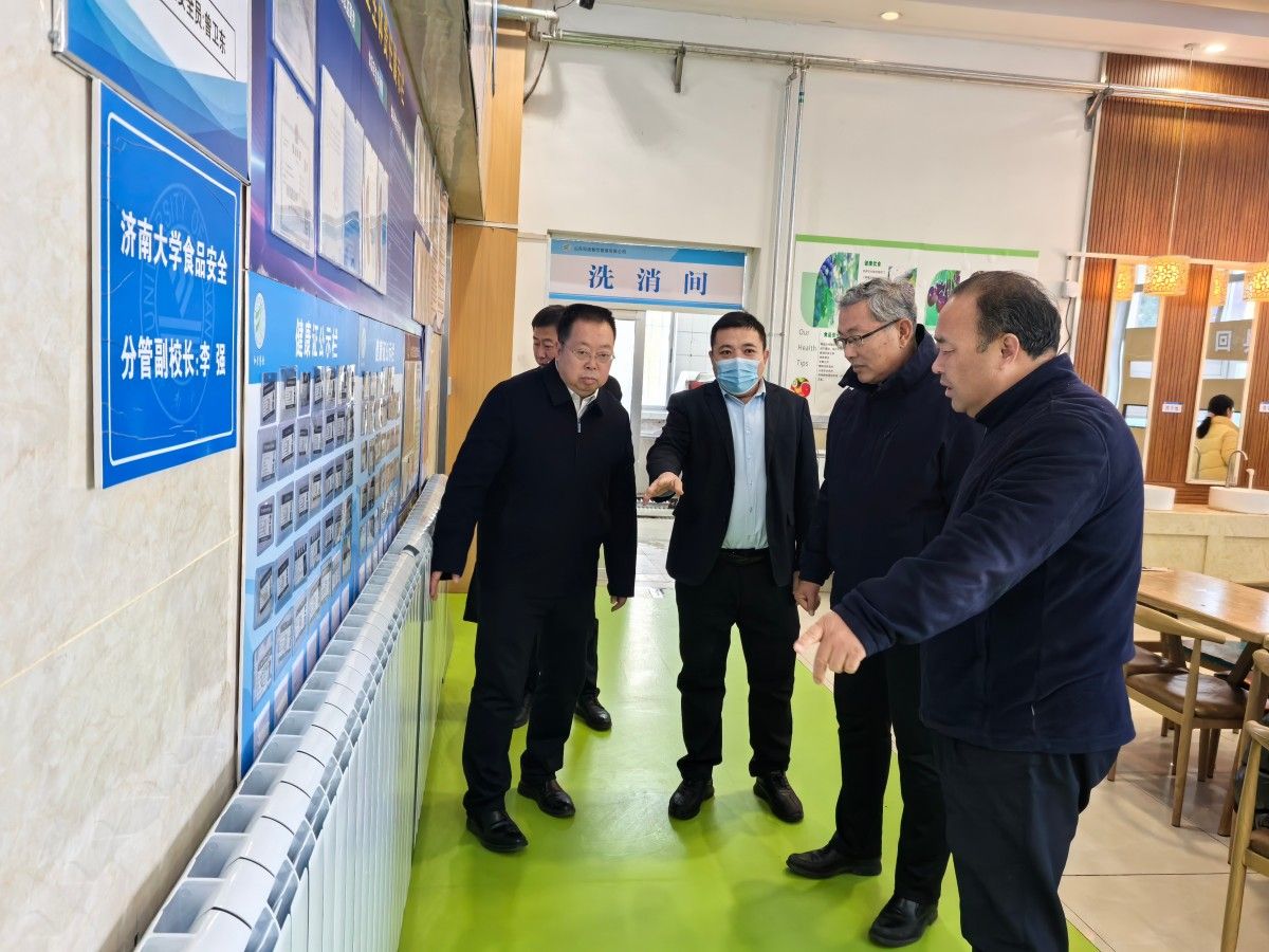 在舜耕校区第六食堂,刘宗明校长一行检查了用餐大厅暖气片加装效果,调查了解了食堂档口饮食花色和价格情况,查看了操作间、留样间、毛菜间、副食库、洗消间的卫生及操作情况,对检查过程中发现的问题提出整改要求。刘宗明在检查中指出,食品安全事关师生身体健康和生命安全,后勤管理处要牢固树立“以学生为本”的工作理念,不断提升后勤服务保障水平,优化工作服务流程,规范食堂经营管理,将师生的期待转化为具体的工作行动;各餐饮经营单位要严格食品制作工序,注重营养搭配,丰富食堂菜品,满足学生饮食多样化需求,让学生吃得安全、吃得健康、吃得营养;各部门要严格落实校园食品安全制度规定,把好食材准入关,以最严标准、最严态度、最严措施抓好校园食品安全工作,守护师生“舌尖上的安全”。