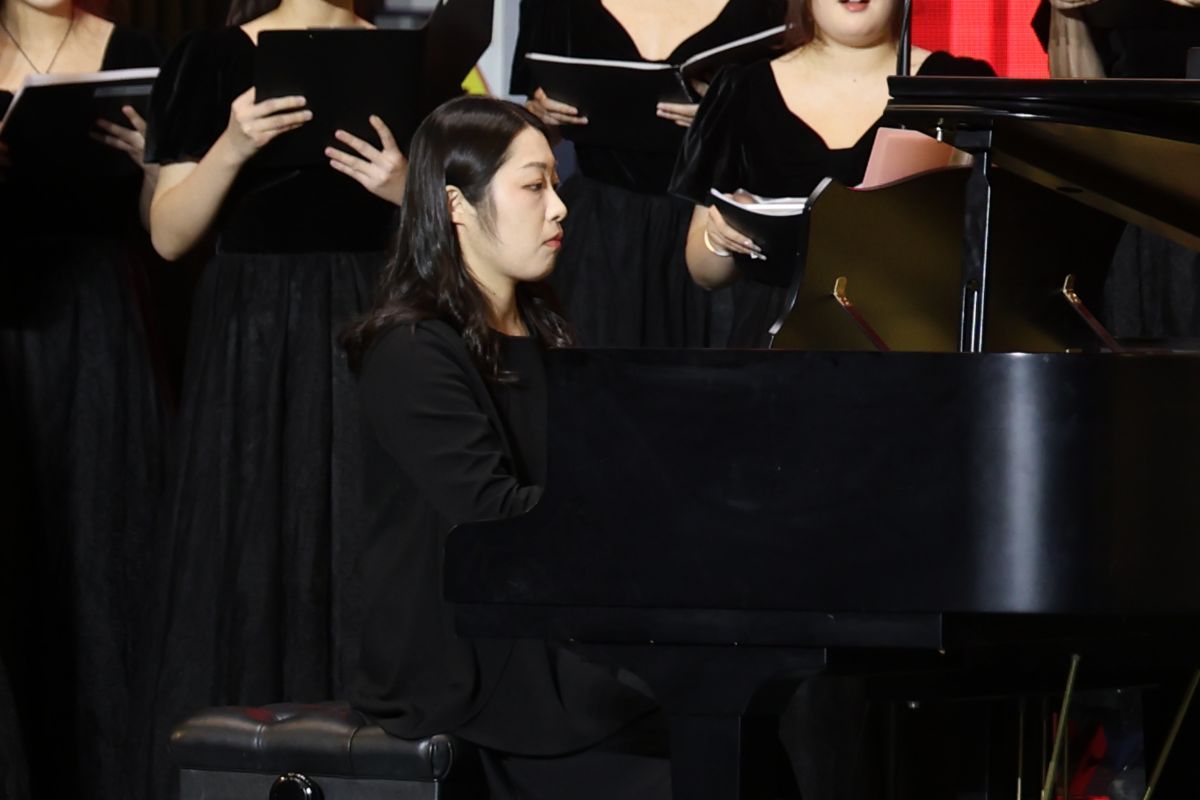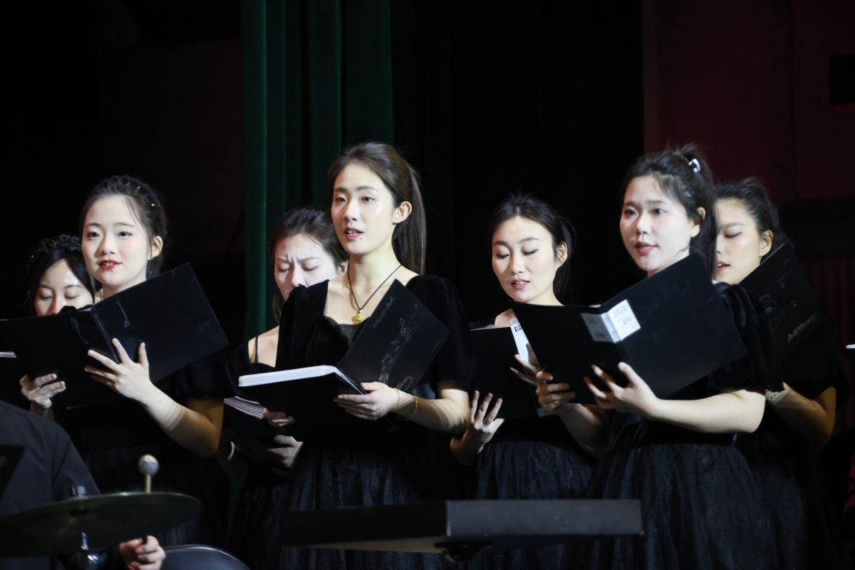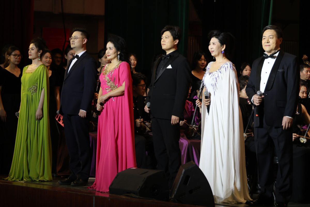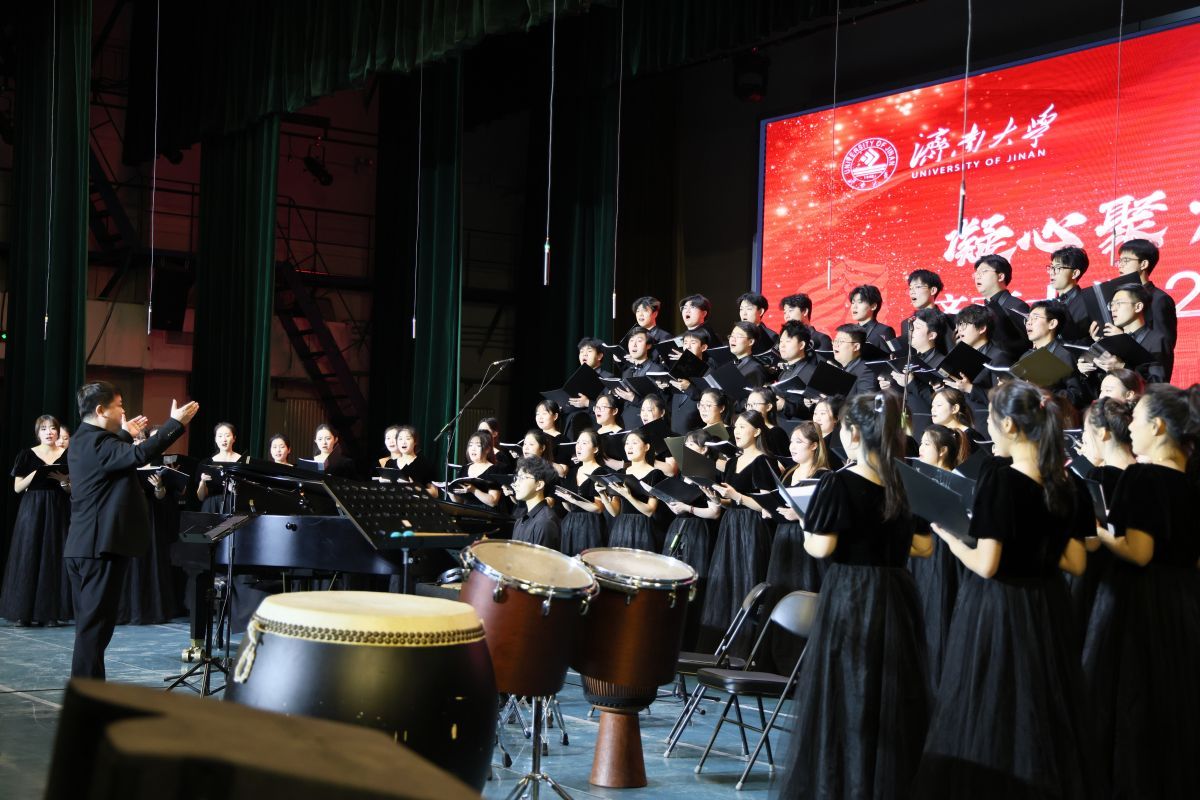 晚会在旋律悠扬的歌曲《思念》中拉开序幕,深情细腻的演唱将观众带入过往岁月的美好回忆中。上半场由sunbet申搏官方网站音乐学院山东泉城合唱团担纲演出。中国古诗词艺术歌曲《越人歌》,展现出诗词韵律与音乐节奏的完美融合,婉转沉静、层次丰富的演唱传达出中国传统文化深厚的底蕴和独特的价值;浓郁的夏季在合唱《夏天的梦是什么颜色的呢》歌声中铺展开来,阳光尽洒、温柔细腻;歌曲《如果明天就是下一生》抒发出真挚情感,让人不禁自问,今天当如何度过;歌曲《亚细亚》《帕米尔风情》将民族元素、交响元素巧妙地融合在一起,既富有动感,又从容大气,将亚洲各国山水相依、民心相通和大美新疆的壮阔画卷铺陈开来;经典红色曲目《因为信仰》《唱支山歌给党听》《爱永在》以铿锵昂扬的曲调和饱满深情的演唱将观众的思绪带回波澜壮阔的奋斗历程,唱出了对新中国成立75周年的赤诚礼赞。
