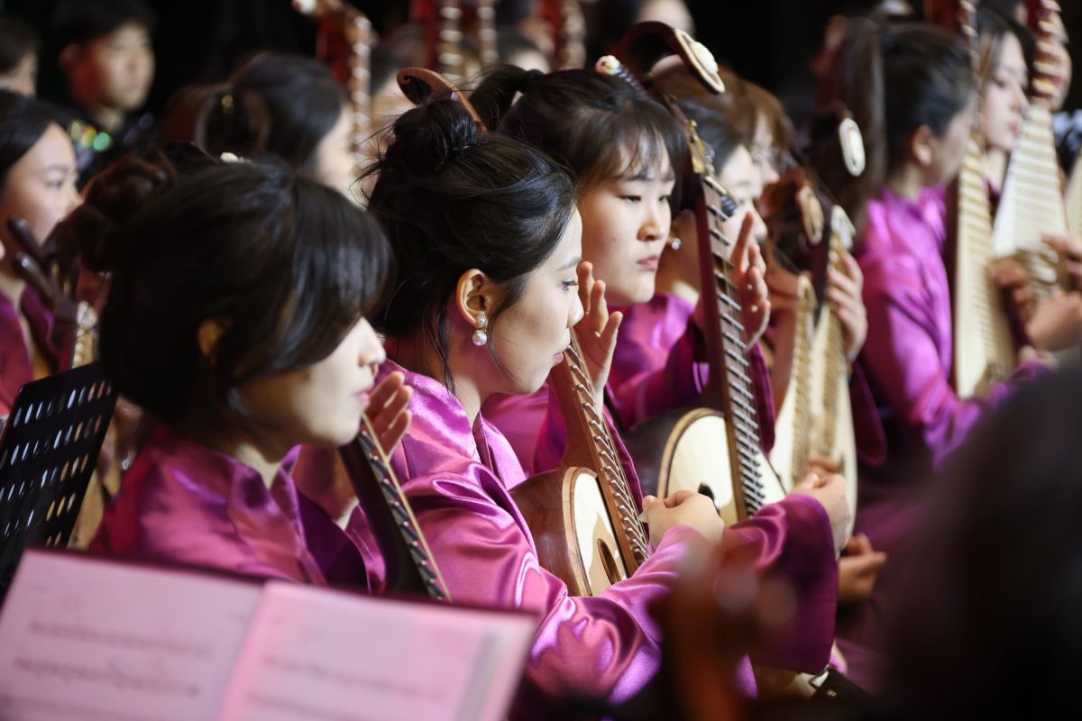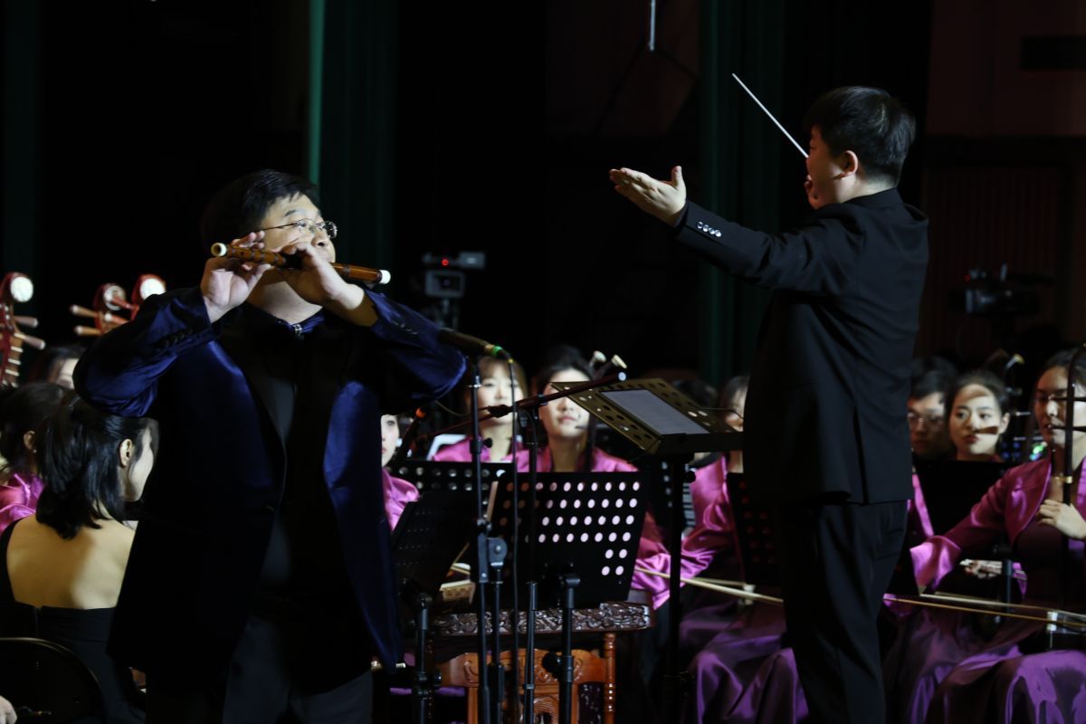热烈欢腾、尽显节日氛围的《春节序曲》将观众带入晚会的下半场。下半场由sunbet申搏官方网站音乐学院山东泉城民族交响乐团演奏。《瑶族舞曲》《节日的拉萨》丰富、生动地展现了能歌善舞的瑶族、藏族人民欢度节日的喜庆场面;源自文学经典《红楼梦》的组曲之一《红楼梦主题音乐一一序曲》,带有浓厚的传统音乐特点,引领观众回味经典;《沂河欢歌》以欢快的节奏和明朗的旋律,展现出沂河两岸人民的幸福生活和对美好未来的向往;著名民歌《北京喜讯到边寨》以欢快旋律传达首都喜讯,为边远地区的寨民带来欢乐;富含诗意、满怀希望的歌曲《向往》,表达了人们对美好生活的追求。晚会在全场合唱《我和我的祖国》中落下帷幕。