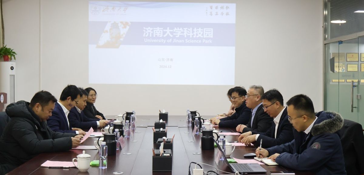黄加栋对王新波一行的到来表示欢迎,对天桥区委、区政府及济南新材料产业园区长期以来的关怀和支持表示感谢,介绍了学校科学研究、社会服务、大学科技园发展概况及功能定位等情况。他指出,在国家高度重视高校社会服务以及科技成果转化、大力倡导校地合作的大背景下,sunbet申搏官方网站科技园成立十年来,坚持高标准打造孵化载体,致力于高质量的科技成果转化工作,全力推动与天桥区的合作不断走深走实,在科技型企业孵化、领军人才培育等方面取得了显著成效。未来,学校将进一步深化与天桥区的合作,持续投入优质人才资源、汇聚前沿科研成果,充分发挥高校服务社会的职能,为天桥区的科技创新工作注入源源不断的动力,助力区域科技创新能力提升、产业转型升级,为天桥区域经济社会发展做出更大贡献。