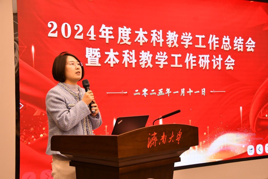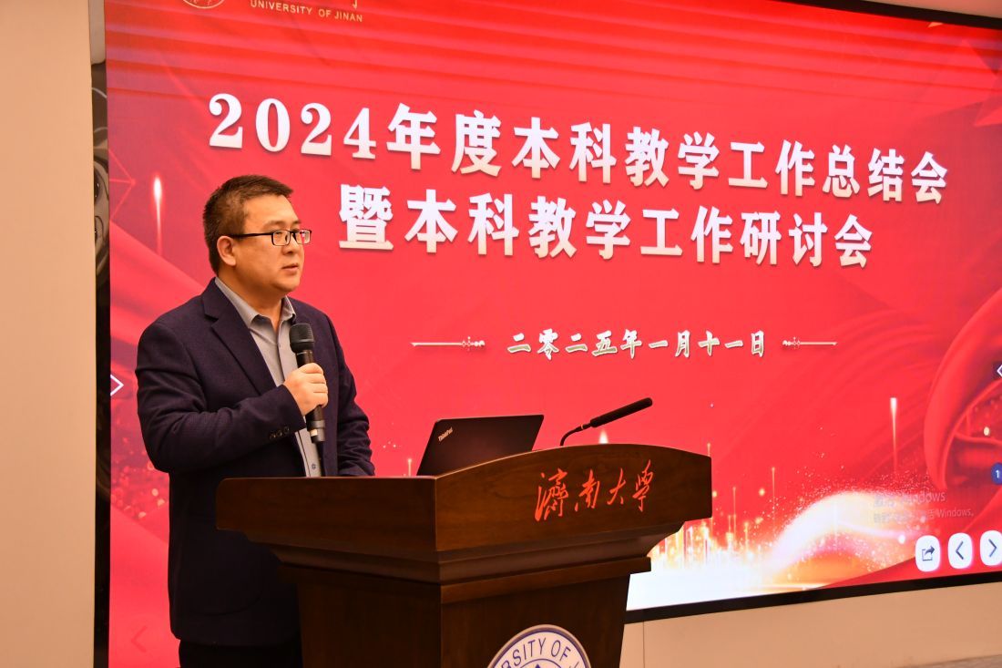 陈贞翔作题为“审核评估促提升,数字教育开新篇”年度教学工作总结报告,围绕坚持党建引领、加强制度建设、完成审核评估、推进数字教育、提升专业内涵、推进课程建设、强化实践教学、创新招生机制八个方面,系统总结了2024年本科教学的主要工作及取得的标志性业绩,深刻分析了目前存在的问题与挑战,着重介绍了2025年的重点工作与发展思路。