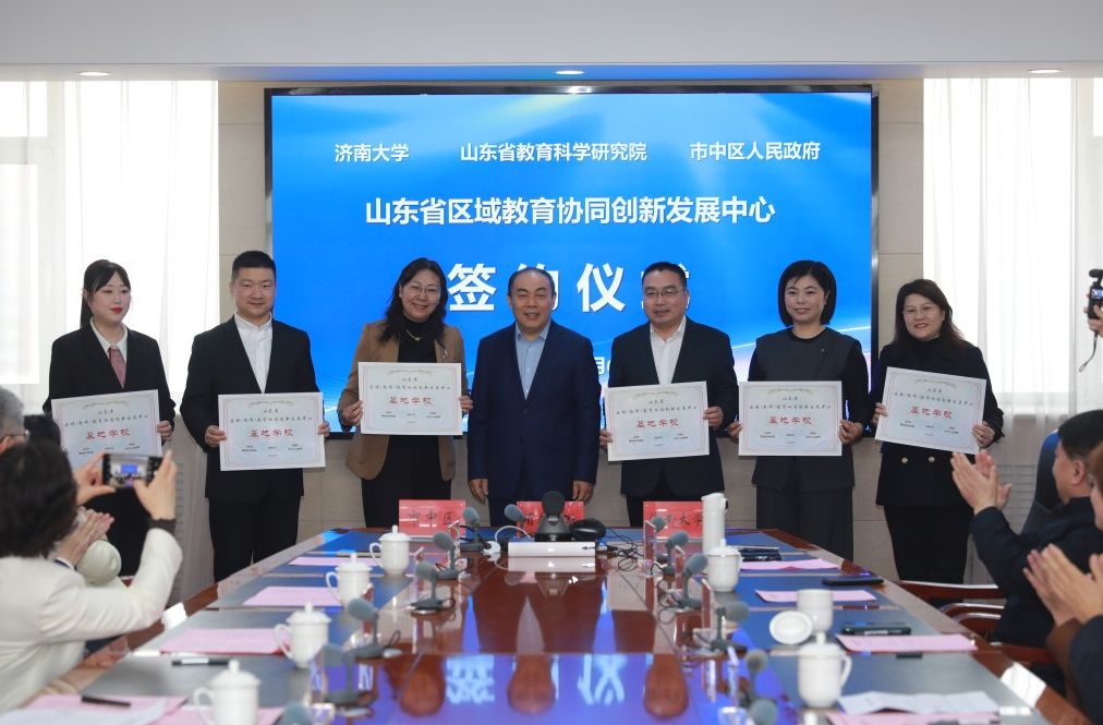 王霞在讲话中指出,三方共建协同创新发展中心,是破解教育发展不平衡不充分问题的关键抓手,是贯通教育人才培养全链条的创新探索,是服务教育强省建设的主动担当。sunbet申搏官方网站作为山东省人民政府和教育部共建的综合性大学、山东省重点建设大学、山东省高水平大学“冲一流”建设高校,师范教育办学历史悠久、人才培养质量优良、服务区域成效显著。下一步,学校将严格履行协议,通过实施“师范教育赋能”“科研攻关赋能”“师资建设赋能”三大赋能行动,打造教育协同创新的“济南模式”,助力各方合作共赢。