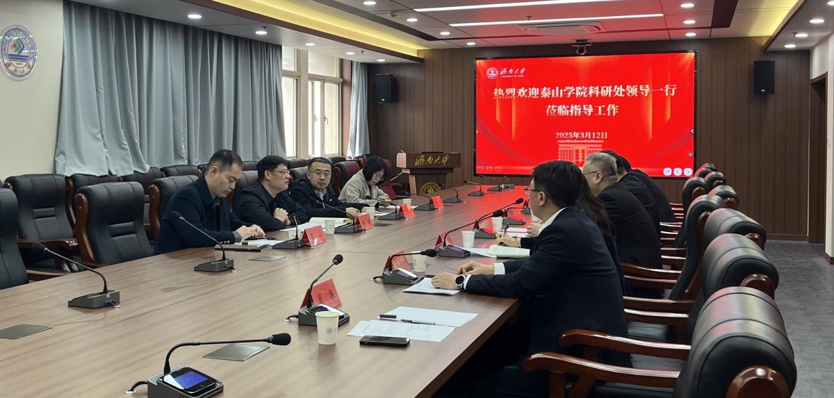 冯斌对我校的热情接待表示感谢,详细介绍了泰山学院近年来在科研工作方面取得的成效和特色发展路径。
