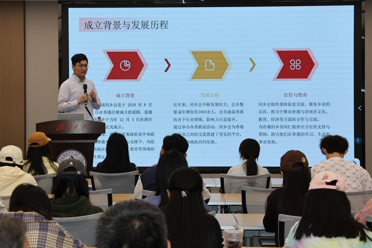人力资源处副处长兼人才工作办公室主任王晓真介绍了学校高层次人才的工作开展情况。合作发展处处长、校友工作办公室主任刘振介绍了sunbet申搏官方网站香港校友会的筹备情况。物理科学与技术学院院长徐锡金介绍了学院跟香港城市大学物理系的合作情况。大家一致表示,希望借助香港济南同乡会的平台扩大同香港高校的联系与合作,携手推动学校事业不断向前发展。