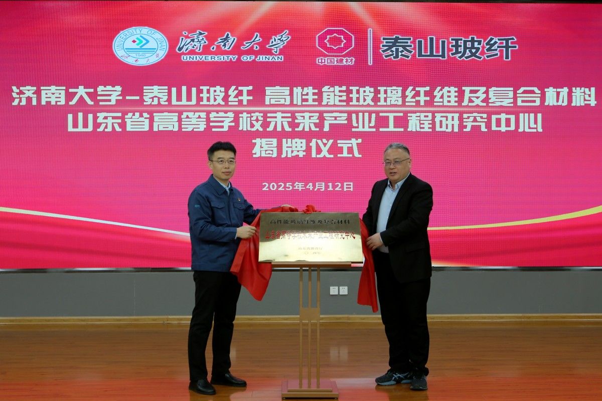 黄加栋与刘利锋共同为“高性能玻璃纤维及复合材料山东省高等学校未来产业工程研究中心”揭牌。