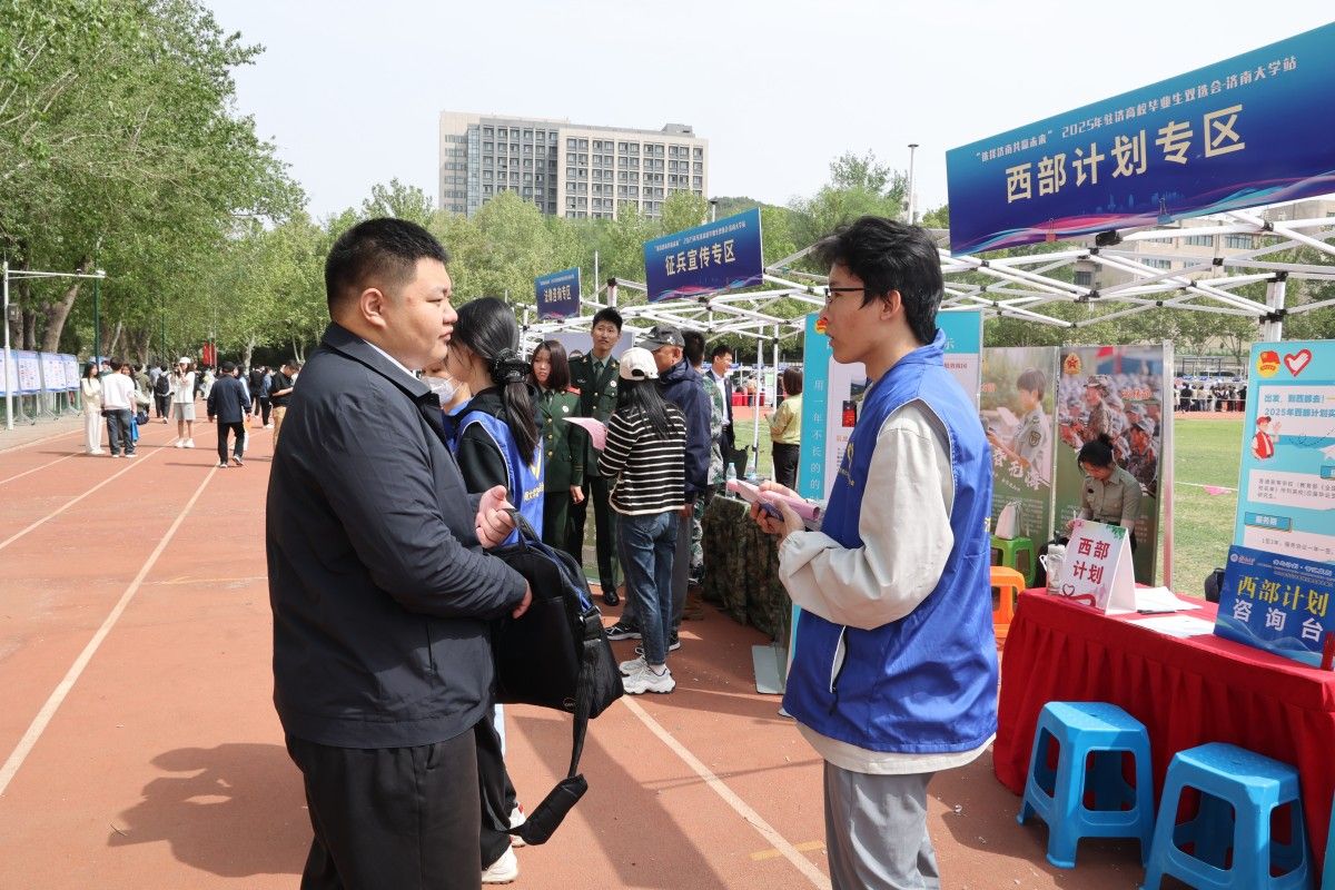 4月18日上午,由济南市人力资源和社会保障局主办,sunbet申搏官方网站承办的“选择济南 共赢未来”2025年驻济高校毕业生就业双选会在sunbet申搏官方网站体育场举办。