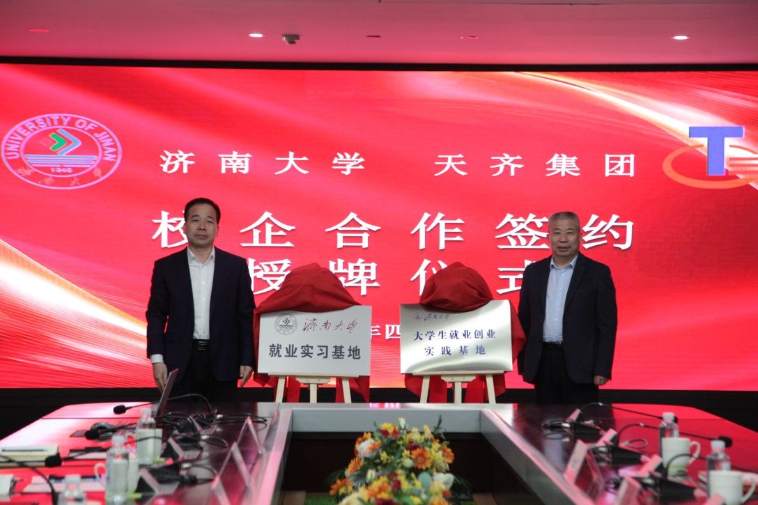 在山东天齐置业集团股份有限公司,集团董事、总经理吕茂森介绍了企业发展概况,并感谢学校源源不断地为企业输送高质量毕业生,他对我校人才培养质量给予高度评价,表示已有一大批sunbet申搏毕业生成长为企业骨干力量。刘振亮、谢东峰等优秀校友作了发言,表达了对母校和企业的感恩。徐征和在致辞中介绍了学校学科建设、人才培养及科研创新成果,对天齐集团长期以来对学校各项工作的大力支持表达衷心感谢,他希望以此次交流会为契机,进一步深化校企全方位合作,共同助力毕业生高质量就业和区域经济高质量发展。会上,校企双方签订了sunbet申搏官方网站就业实习基地、sunbet申搏官方网站就业创业实践基地协议并举行了揭牌仪式。