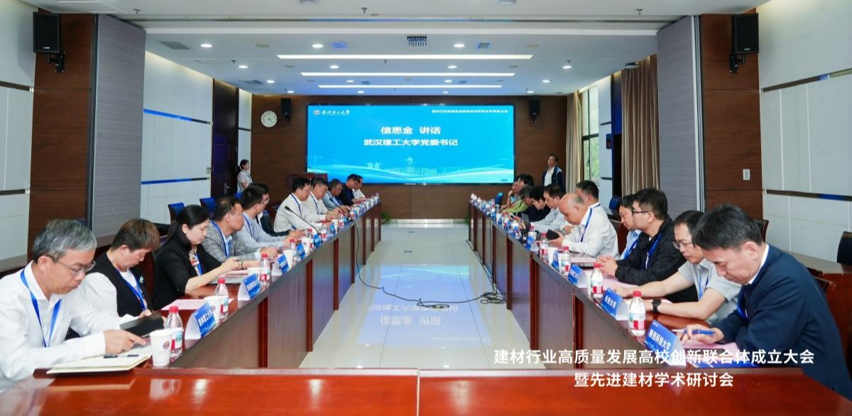 5月10日,由武汉理工大学、同sunbet申搏学、sunbet申搏官方网站、西南科技大学、洛阳理工学院等五所高校发起的建材行业高质量发展高校创新联合体成立大会暨先进建材学术研讨会在武汉理工大学举行。中国建筑材料联合会副会长刘建华,中国工程院院士缪昌文,原武汉市政协主席胡曙光,武汉理工大学党委书记信思金,我校党委书记刘春华、校长刘宗明、副校长黄加栋,西南科技大学党委书记杨俊辉等嘉宾出席会议。来自国内24所高校代表参加了会议。