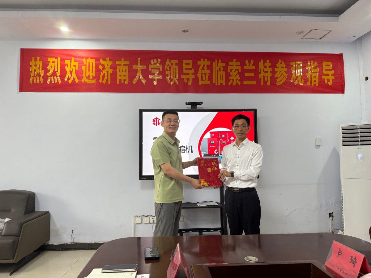 在山东索兰特机械制造有限公司,李强一行在公司董事长、2014届自动化专业校友李超陪同下,参观企业展厅和生产车间,详细了解了企业发展历程、业务范围、产品体系、核心技术以及未来规划。座谈会上,李超分享个人求学及创业经历,对母校的教育和培养表示衷心感谢。希望未来与学校在人才招聘、定制化人才培养、学生实习实践等方面加强合作,为学生提供更多的实践机会和就业岗位,同时也期望借助学校相关专业科研力量,解决企业在技术创新过程中遇到的难题,共同推动行业的发展。