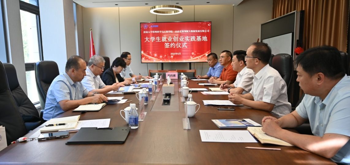徐征和在致辞中介绍了学校的发展情况,特别是在大数据、人工智能、数字经济等领域的新突破,希望学校与企业在人才培养、科研攻关等领域进行深度合作,拓宽就业渠道,为毕业生创造更多高质量就业机会。李经国介绍了章丘区的历史文化及产业发展情况,希望双方能进一步搭建校企对接平台,共同探索“订单式培养”“实训基地共建”等合作模式,为章丘区输送更多高素质技术技能人才,助力企业稳岗拓岗,实现校地共赢。徐伟从学院的办学规模、师资力量、发展质量、科研实力、育人成效、服务社会等方面,介绍了管理科学与工程学院为社会输送高素质人才的能力与成果。董新建详细介绍了企业近些年来在算力支持、安全保障、标准认证、校企合作等领域的发展情况,并表示企业将深度推进实践基地建设,为学生们提供更多的实习实践机会,推动人才供需精准对接。