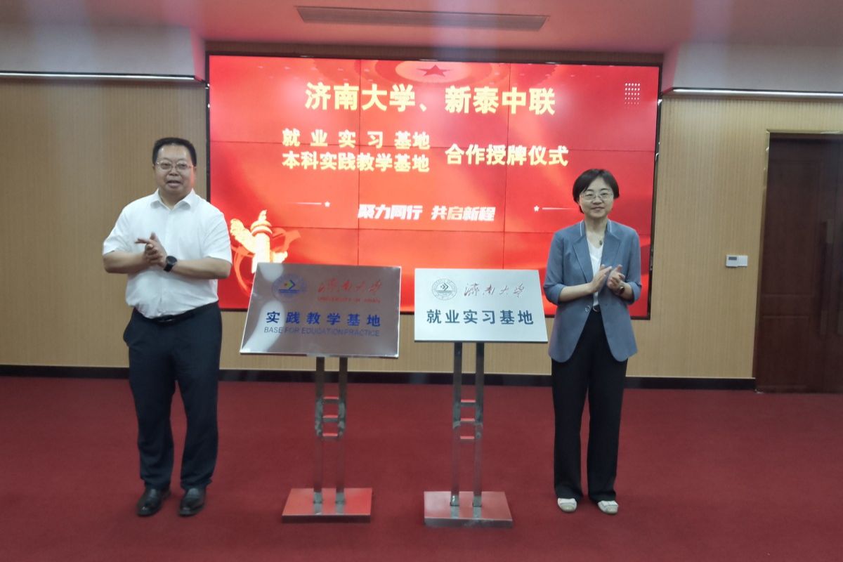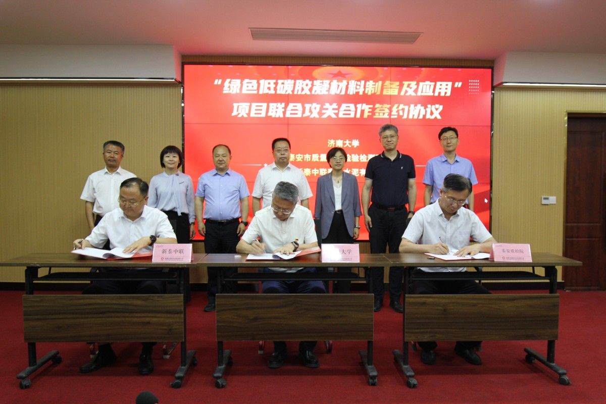 签约仪式上,材料科学与工程学院与新泰中联泰丰水泥有限公司、泰安市质量技术检验检测研究院签订项目联合攻关协议,与新泰中联泰丰水泥有限公司分别签署了就业实习基地协议和本科实践教学基地协议。刘宗明与王翠共同为就业实习基地和本科实践教学基地揭牌。