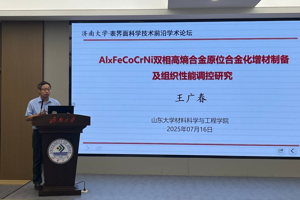 会议期间,召开了表界面科学技术前沿学术论坛,汪家道教授、鲁连涛研究员、王广春教授分别作了题为《电磁结构跨尺度共形制造》《微粒子高速冲击表表面改性技术及应用》《AlxFeCoCrNi双相高熵合金原位合金化增材制备及组织性能调控研究》的学术报告。