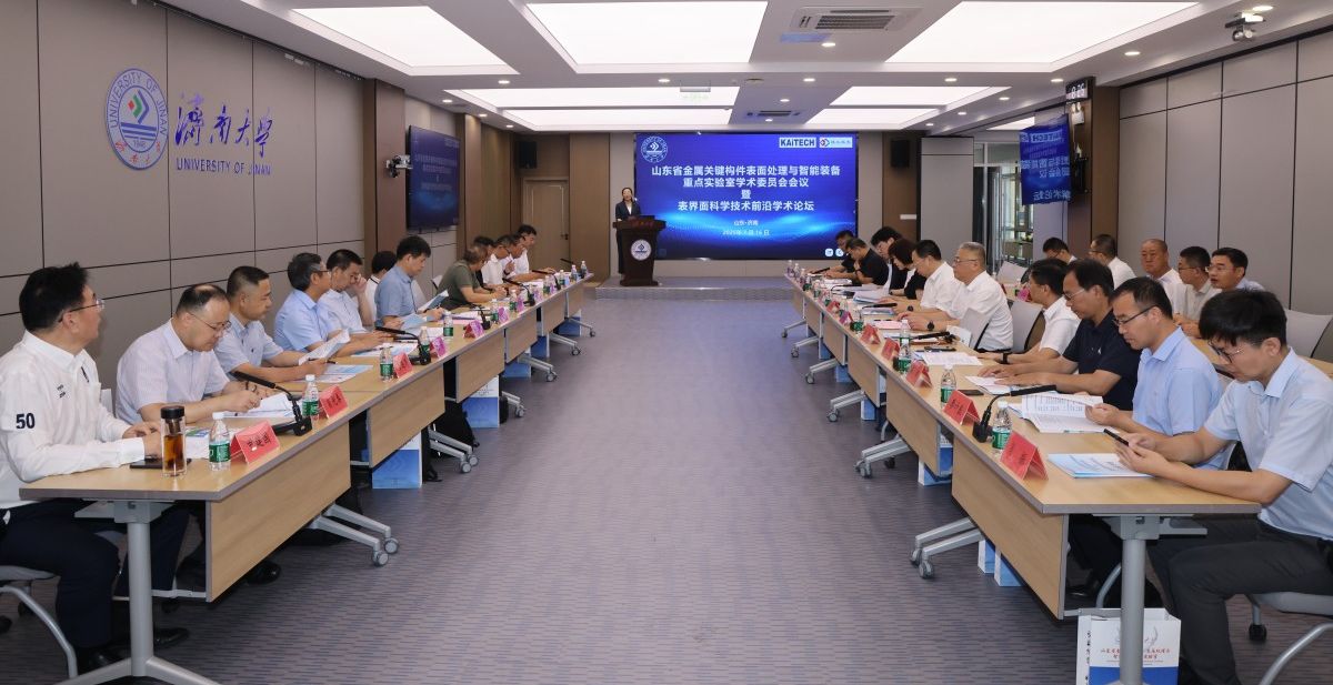 7月16日,依托sunbet申搏官方网站建设的山东省金属关键构件表面处理与智能装备重点实验室(筹)(以下简称“重点实验室”)学术委员会会议暨表界面科学技术前沿学术论坛在我校召开。我校党委副书记、校长刘宗明,党委常委、副校长黄加栋出席会议。重点实验室共建单位负责人,学校发展规划与学科建设处、科技处、实验室与资产管理处、机械工程学院、重点实验室负责人及相关人员参加会议。科技处处长颜梅和重点实验室学术委员会主任、清华大学教授汪家道分阶段主持会议。