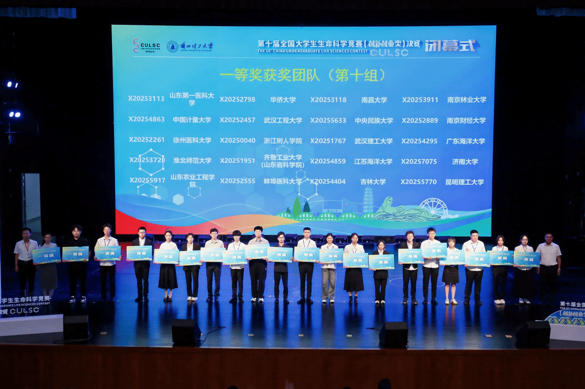 在创新创业类赛道,由体育学院亓子扬、张卓凡、田慧、李煜昊、马源同学完成的作品《脑有所依-基于活体传感的脑内维生素 C 精准监测及其在缺氧性神经损伤中的机制研究》获得一等奖;由化学化工学院李宇恒、涂传怡、庄怡琳、郭文卓、赵轩、刘清同学完成的作品《“芯”灵纸巧——基于表面等离子共振增强CuInSe2/Cu3(BTC)2/Y:ZnO级联敏化效应的纸芯片PEC检测器件》和由生物科学与技术学院张佳、王佳慧、杨爱娇同学完成的作品《“噬”菌卫“殖”——新型噬菌体养殖业杀菌剂》获得二等奖;由化学化工学院王林胜、苏士稳、司宏宇、皮昊翀、程义恒、张俊驰同学完成的作品《“检微知著”——高灵敏便携式肿瘤标志物快检芯片的构建与应用》和贺光越、刘含笑、张弛、蓝欣雨、佘钜基、栾尉超同学完成的作品《“铁钴铮铮”——基于Fe/Co双离子信号放大的ECL传感器实现CA19-9超灵敏检测》,由生物科学与技术学院马元欣、谈舒琪、李嘉辉、陈明昊、江晶莹、夏薇同学完成的作品《“噬退菌安”——抗噬菌体芽孢杆菌多功能底盘的构建》,苏振林、田甲、陈贵川、李子璇、周小茜同学完成的作品《僵菌助耕——绿农抑菌防虫生防菌剂》和董彦君、马元欣、陈明昊、孙嘉硕、李嘉辉、江晶莹同学完成的作品《西洋参促生防病生态菌剂的研究及应用》,由水利与环境学院袁野、董思辰、高元梦、梁辰悦、姚杰、方婉婷同学完成的作品《浒筑新材——浒苔基纳米纤维构筑水工材料新未来》获得三等奖。