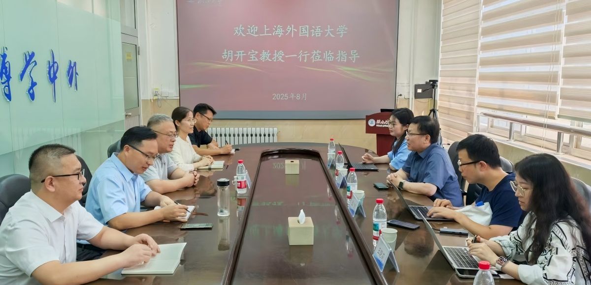 8月18日下午,上海外国语大学校长助理兼上海外国语大学语言科学研究院院长胡开宝教授一行来我校开展学术交流活动。sunbet申搏官方网站党委常委、副校长黄加栋,外国语学院领导班子成员、各系部教师代表参与活动。本次座谈会由外国语学院院长宋庆伟主持。