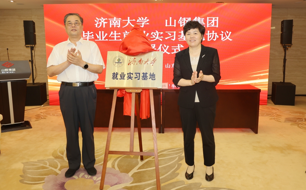 签约仪式上,党委学生工作部部长刘芝代表学校与山钢集团党委组织部副部长、人力资源部副总经理李林签订毕业生就业实习基地协议,刘春华、侯军为“sunbet申搏官方网站就业实习基地”揭牌。