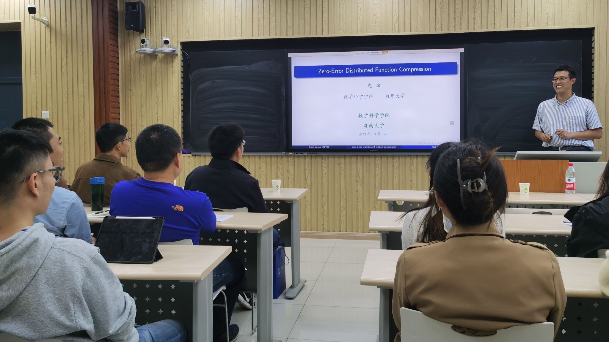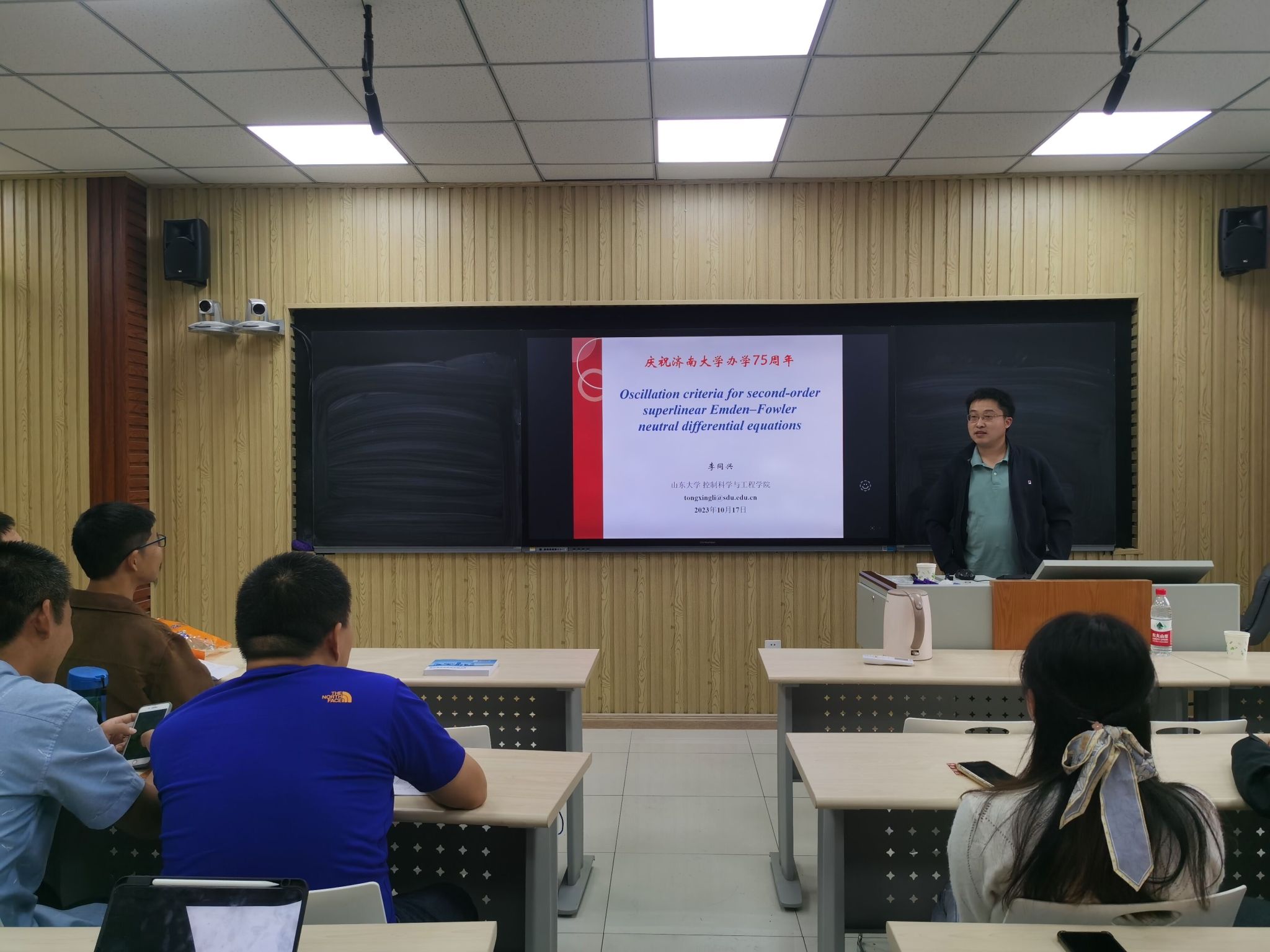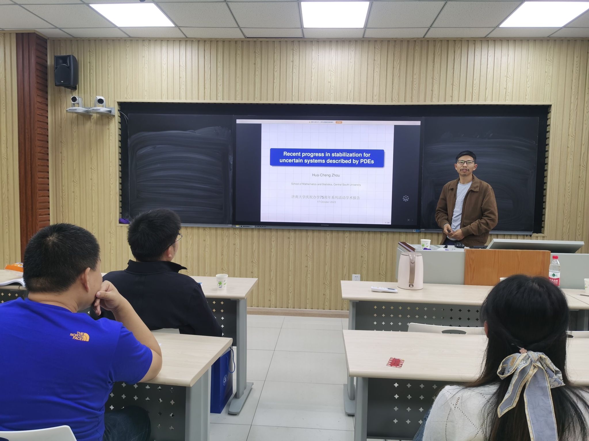 系列学术报告活动先后邀请了南开大学教授、博士生导师、入选国家级“四青”人才项目及南开大学百名青年学科带头人培养计划成员、学院2005届信息与计算科学专业校友光炫,中南大学教授、博士生导师、国家高层次青年人才、学院2009届信息与计算科学专业校友周华成,山东大学教授、博士生导师、齐鲁青年学者、教育部学科(控制科学与工程)评估专家、学院2007届数学与应用数学专业校友李同兴。专家学者们各自分享了他们在数学科学领域的最新研究成果和前沿动态,内容涵盖了多个领域,光炫教授在《Zero-Error Distributed Function Compression》中提出了两个二进制无内存源X和Y的零误差分布式函数压缩系统模型;周华成教授以《Recent progress in stabilization for uncertain systems described by PDEs》为题介绍偏微分方程描述的不确定系统稳定的最新进展;李同兴教授在《Oscillation criteria for second-order superlinear Emden-Fowler neutral differential equations》中介绍了二阶超线性埃姆登-福勒中立性微分方程的振荡准则。
