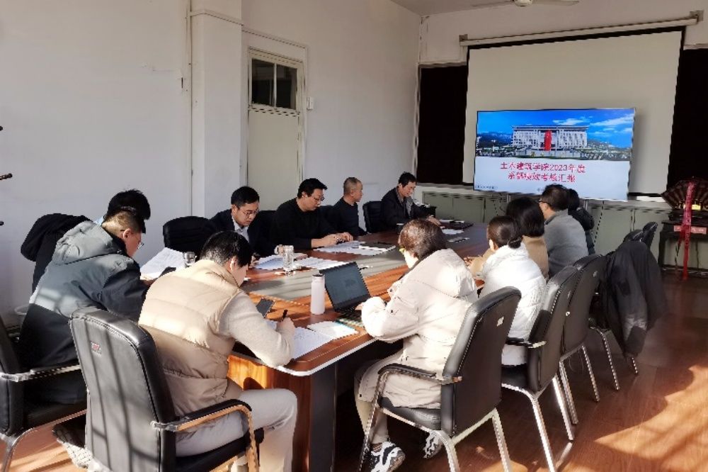 1月5日下午,土木建筑学院召开2023年度系部工作绩效考核会议。会议由学院副院长王嘉斌主持,学院党委书记李超,院长谢群,学院班子成员以及学院办公室、学生管理工作办公室、教学管理办公室以及各个教学系部行政负责人参加了本次会议。