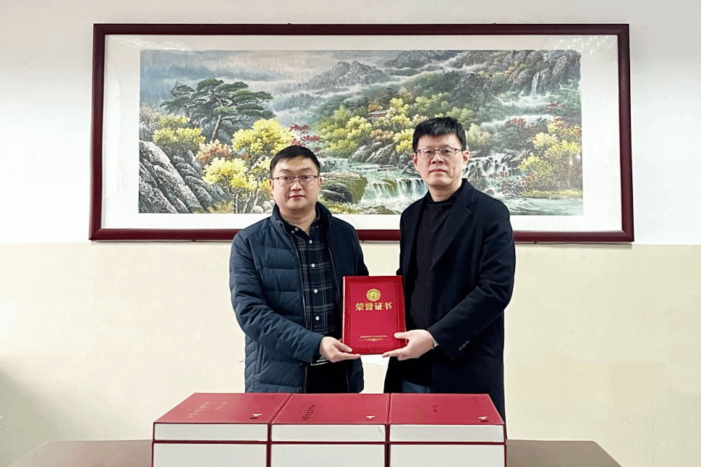 仪式上,朱恒华代表山东省地质调查院向我校捐赠《中国区域地质志·山东志》70册。王爱国代表学校颁发了捐赠证书,对山东省地质调查院的关心和支持学校发展表示衷心的感谢。