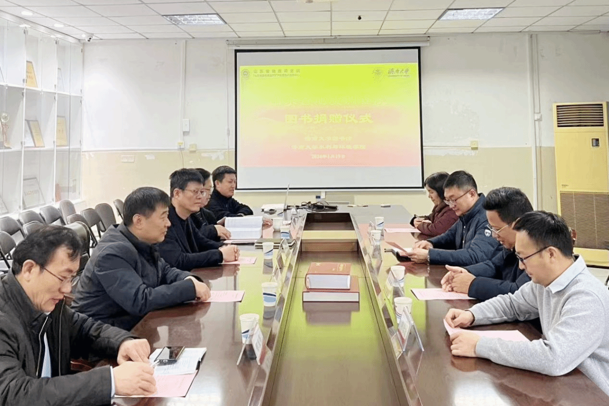 1月19日下午,山东省地质调查院《中国区域地质志·山东志》赠书仪式在sunbet申搏官方网站水利与环境学院举行。山东省地质调查院副院长朱恒华、技术质量科主任张华平、水文环境地质所所长刘春华、副所长刘治政,sunbet申搏官方网站图书馆馆长王爱国,水利与环境学院党委书记王义、常务副院长王仲鹏及部分教师代表出席仪式。