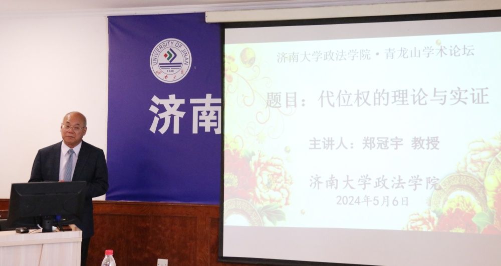 5月6日下午,政法学院青龙山学术论坛在第四教学楼428教室举行。本次论坛邀请东吴大学法学院院长郑冠宇教授作题为《代位权的理论与实证》的报告,论坛由法学系系主任刘康磊教授主持,山东圣义律师事务所律师、政法学院师生共计70余人参加。