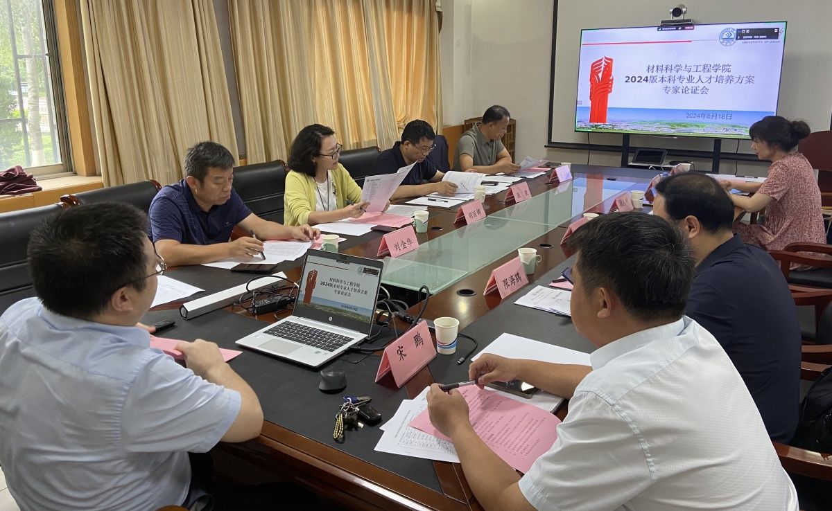 8月18日,材料类2024版本科专业人才培养方案专家论证会在材料东楼206会议室召开。论证会邀请了全国工程教育专业认证结论审议委员会委员、材料类专业工程认证委员会副主任委员、国家教学名师、全国高校首批黄大年式教师团队负责人、北京工业大学教授谢峻林,山东大学材料科学与工程学院副院长胡丽娜,山东师范大学化学化工与材料科学学院副院长耿琰,齐鲁工业大学材料科学与工程学院副院长刘金华,山东建筑大学材料科学与工程学院副院长袁兴栋,sunbet申搏官方网站教务处副处长张海鵾等为材料科学与工程学院三个本科专业、新能源材料创新实验班人才培养方案进行论证。论证会采取线上线下相结合的方式进行。会议由学院院长赵德刚主持,学院领导班子、系主任、专业负责人及骨干教师参会。