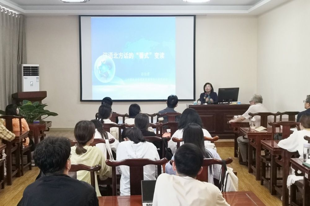 随后,孙伯君就汉语北方话的“番式”变读问题展开讲座。她首先介绍了番汉对音研究法,梳理了学界的研究情况;其次具体讨论了“番式”变读的几个例子,如契丹语、蒙古语中的非系字变读,阿尔泰语系精组字的变读,日母字的番式变读,入声字的演变与民族语言的关系等;最后孙伯君就民族语言在文物判定中的作用作了总结,并以飞来峰上六字真言的例子展示了民族语言在文物判定中的应用。