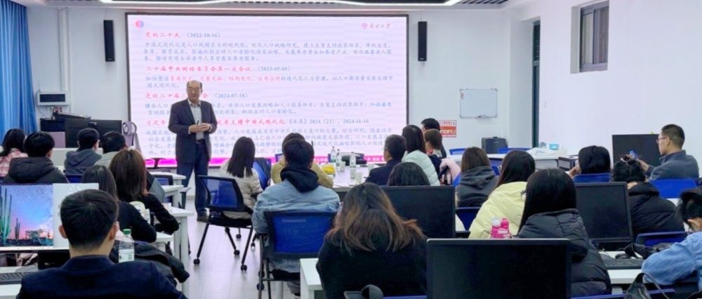 原新从六个维度对人口高质量发展的新常态进行了深入解读,阐述了人口发展的趋势性变化,深度剖析了人口结构转型带来的系列影响,强调提升人口素质对高质量发展具有重要意义。他指出,伴随着我国人口发展步入新阶段,人口老龄化的加速、生育率持续走低等问题凸显,人口高质量发展成为必然要求与新趋势,人口高质量发展的新常态要求人口与经济、社会、资源环境等多方面的统筹协同发展。原教授的讲座引发了现场师生强烈的兴趣,围绕着人口政策优化、人口红利等与原教授进行了深入的互动交流。