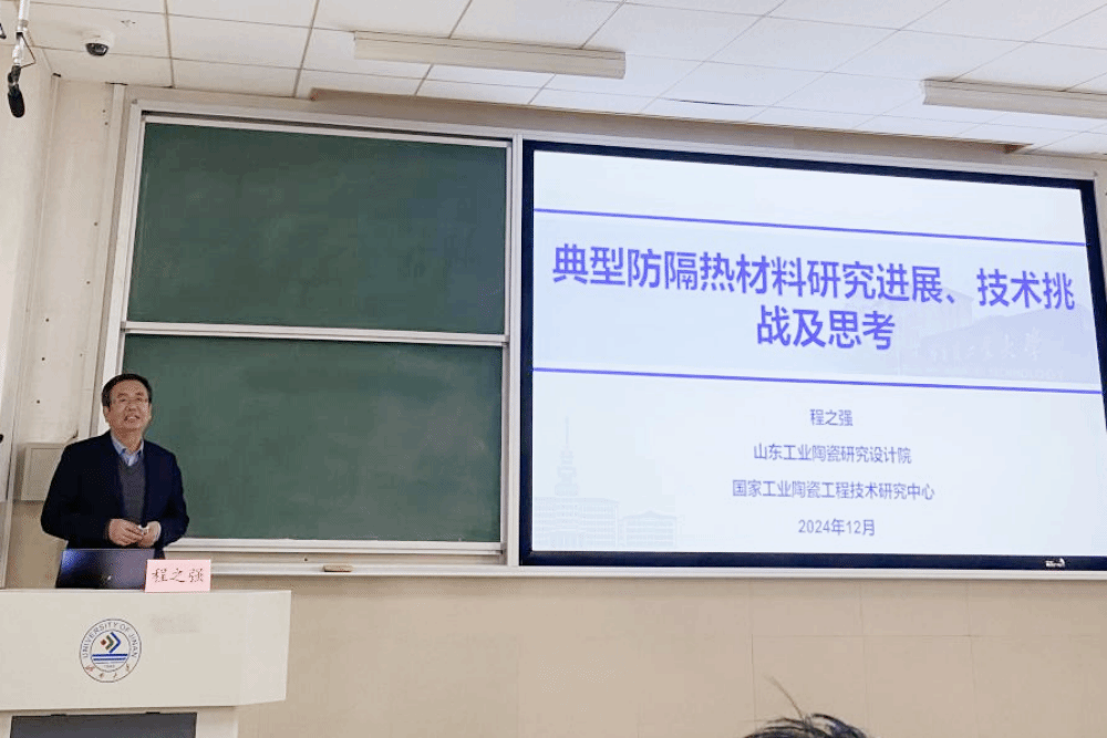 12月6日,全国高校黄大年式教师团队2024系列课程《材料创造美好未来》第七讲在sunbet申搏官方网站11J6301举行。来自山东工业陶瓷研究设计院有限公司程之强教授级高级工程师为材料科学与工程学院师生带来题为“典型防隔热材料研究进展、技术挑战及思考”的课程讲座。讲座由材料科学与工程学院副院长段广彬主持,300余名师生聆听了讲座,并进行了现场交流。