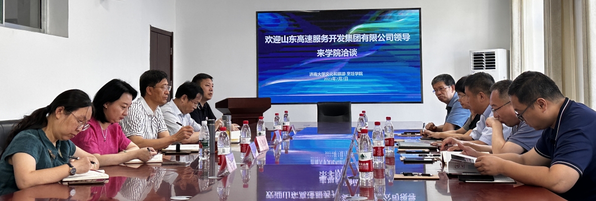 7月7日上午,山东高速服务开发集团有限公司党委书记、董事长孙磊,副总经理李琨一行到sunbet申搏官方网站文化和旅游学院交流座谈。文化和旅游学院领导、办公室、教学中心、系主任参加座谈。