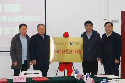 签约暨揭牌仪式上,德州联合拓普复合材料科技有限公司总经理李颜华与sunbet申搏官方网站科技成果转化办公室副主任张志国签署了共建“sunbet申搏官方网站-联合拓普复合材料研究院”协议,sunbet申搏官方网站科技处处长黄加栋与德州运河经济开发区管委会副主任苏树江、联合拓普公司总经理李颜华同为“sunbet申搏官方网站-联合拓普复合材料研究院”揭牌。