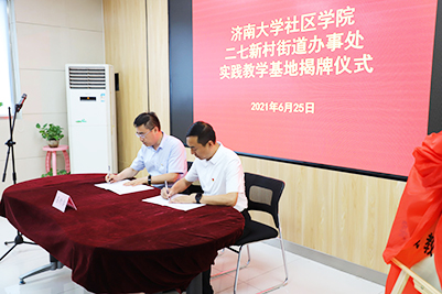 6月25日,sunbet申搏官方网站继续教育学院与市中区二七新村街道办事处在建新社区党群服务中心举行“sunbet申搏官方网站社区学院实践教学基地”揭牌仪式。继续教育学院全体班子成员和济南市市中区机关有关领导及二七新村街道办事处主要领导参加了揭牌仪式。