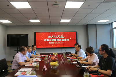 杨玉彬对数学科学学院一行的到来表示热烈欢迎,并简要介绍了公司的业务板块、发展规模以及企业文化的发展情况。他表示,校企合作是新形势下企业发展进步的内在要求,通过与高校开展深度合作,能达到资源共享、优势互补的目的,相信通过双方共同努力,一定会把校企合作做实、做大、做强,实现学生、学校、企业三方共赢。学院党委书记侯启海对杨玉彬给予学院学生实习实训提供的机会和平台表示诚挚感谢,并简要介绍了学院的专业设置、人才培养、校企合作等情况。他表示,校企合作是学院人才培养的需要,也是企业发展的需要,希望双方可以开展多层次、多形式、多领域的合作,建立互利共赢的产教融合和校企合作模式,在有效促进学生实习就业的同时,解决人才培养与社会需求对接不紧密的问题。学校党委学生工作部(处)副处( 部)长董俊杰介绍了学校在学生实习实训基地的建立、学生高质量就业、产教融合发展等方面的基本情况,希望双方以实习实训基地揭牌为契机,加强校企合作,着力创新人才培养模式,全面提高人才培养质量。学院党委副书记、副院长张沂红介绍了学院近三年毕业生就业实习情况,并希望双方能够多方面、全方位地深入合作,真正发挥就业实习基地的作用。