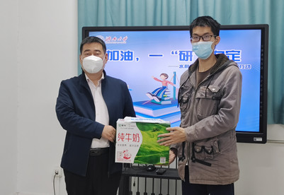 发放爱心物资,让学生舒心。学院积极为学生提供力所能及地生活帮助,为被隔离的学生及时送去了牛奶、水果等慰问品,配合做好一日三餐发放。开展“加油,一‘研’为定暖心行动”,为考研学生送上牛奶,鼓励他们克服困难,力争取得优异成绩。关怀慰问抗疫志愿者,为他们送上水果,嘱咐他们保重身体,做好防护。学院还准备了口罩和消毒液等防护物资,陆续发放到每位学生手中。
