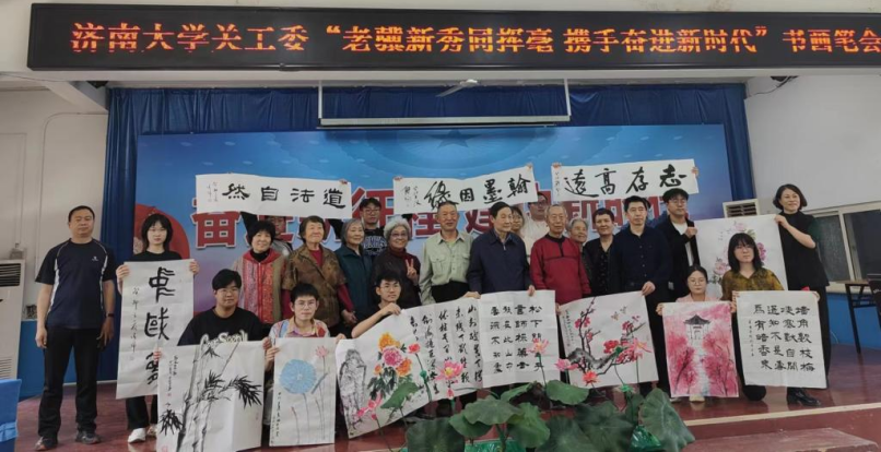 在这个花团锦簇、姹紫嫣红的五月,为弘扬中华民族的优秀传统文化,引导更多的青年学生在学习中华书画中陶冶情操,提高素养,充分发挥好sunbet申搏官方网站关工委的育人功能,展示出新时代离退休“五老”良好的精神风貌和高尚的思想境界,5月11日,离退休工作处举行“老骥新秀同挥墨,携手奋进新时代”书画笔会。离退休书画爱好者和学生金石书画社及美术学院部分师生参加了活动。