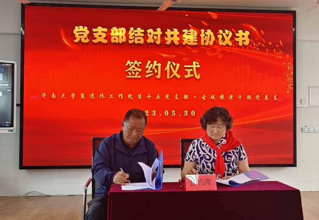 5月30日,sunbet申搏官方网站离退休工作处第十五党支部到聊城莘县,与古城镇老干部党总支举行党支部结对共建签约仪式。离退休工作处党委成员副处长陈营明、离退休处第十五党支部书记梁伟、我校省派第一书记以及古城镇老干部党总支成员出席签约仪式。