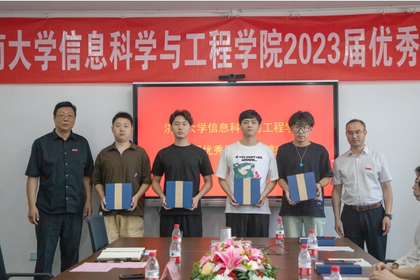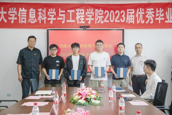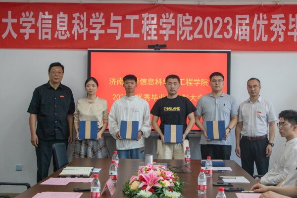 学院院长陈贞翔宣读《关于表彰信息科学与工程学院2023届毕业生的决定》,对学院优秀毕业生、升学、考公、就业先进个人等学生进行了表彰。并对毕业生们走向新的就业岗位、迈入新的学府、开启一段崭新的奋斗旅程表示诚挚的祝愿。同时希望同学们勇于创新突破,贡献作为,抢抓机遇,有勇于探索创新的劲头,在不断尝试中前进,在服务人类共同理想中实现个人价值。随后,学院领导为优秀毕业生颁发了纪念奖品,并合影留念。
